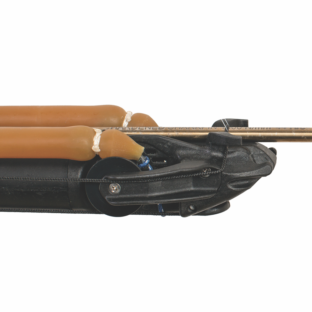 Pateicoties rullīša uzgaļa izmantošanai, gumija atrodas abās ieroča pusēs, un efektīvais garums tiek dubultots, palielinot ražīgumu vai šāvienu, nepalielinot stobra garumu. Ar 20 mm divkomponentu lateksa gumiju aprīkots šķēpmetējs. Komplektā ietilpst arī 6,5 mm nerūsējoša tērauda 17-4 PH vārpsta ar knaiblīti, haizivs spuras āķiem un garu uz leju vērstu dakšu.