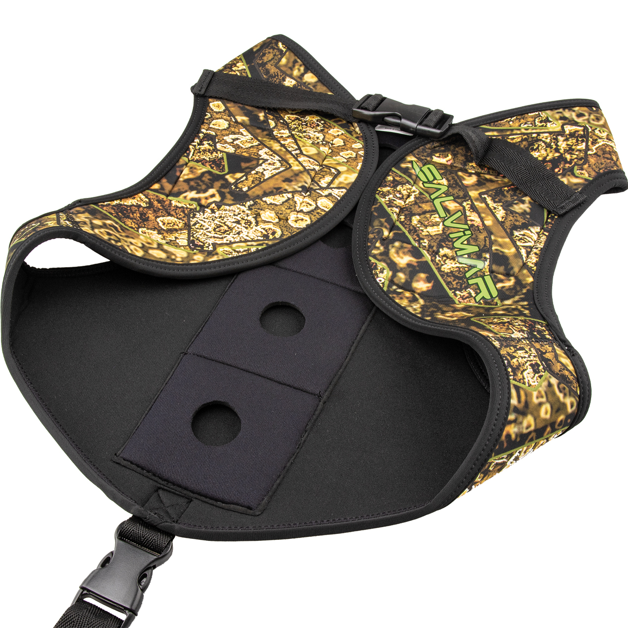 The weight system is designed to reduce the load on the lower back by distributing the weight of the weights across the spearfisher’s body. It is used together with a weight belt and is recommended for wetsuits thicker than 7 mm.