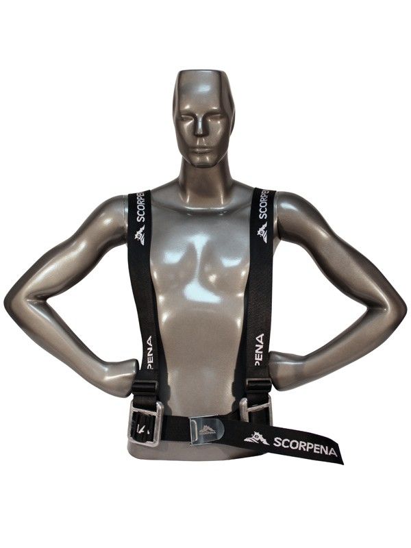 Scorpena weight harness relieves the lower back, distributing the weight on the spearfisher’s back more evenly. It is usually used with neoprene wetsuits thicker than 5 mm.