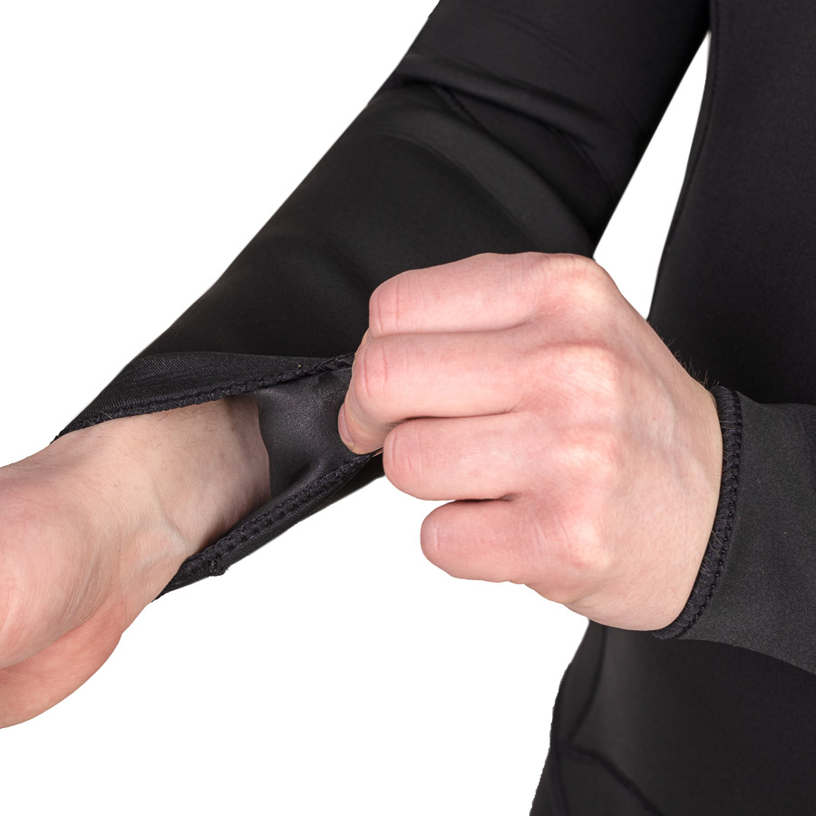 • Kapuces iekšpusē izmantots neilons, lai aizsargātu matus un atvieglotu hidrotērpa uzvilkšanu.