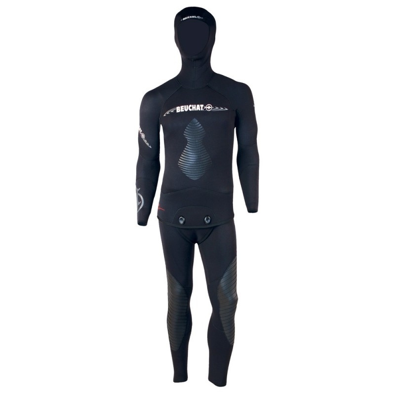 Beuchat Espadon Equipe ir atvērtās poras neoprēna tērps zemūdens medībām ar jaku (bez rāvējslēdzēja) un garām biksēm.
