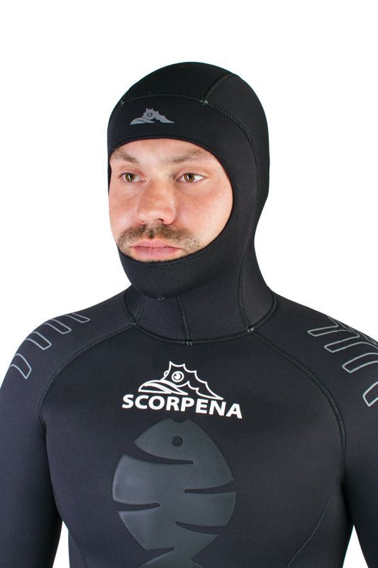 · The cut of the jacket hood is adapted for use in cold water: the hood covers the forehead and chin.