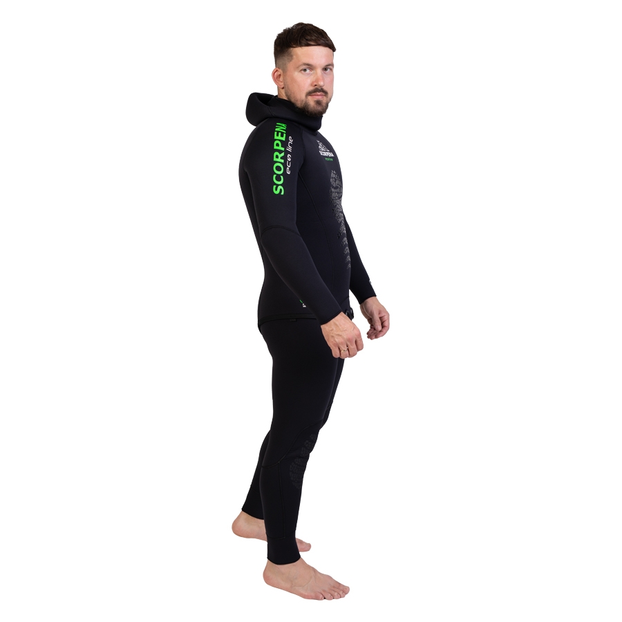 Scorpena EcoLine hidrotērpi ir izgatavoti no ļoti izturīga, mīksta un ekoloģiska Sheico neoprēna, līmēti, izmantojot jaunu ūdens bāzes līmi bez smakas (neizmantojot ķīmiskos šķīdinātājus).