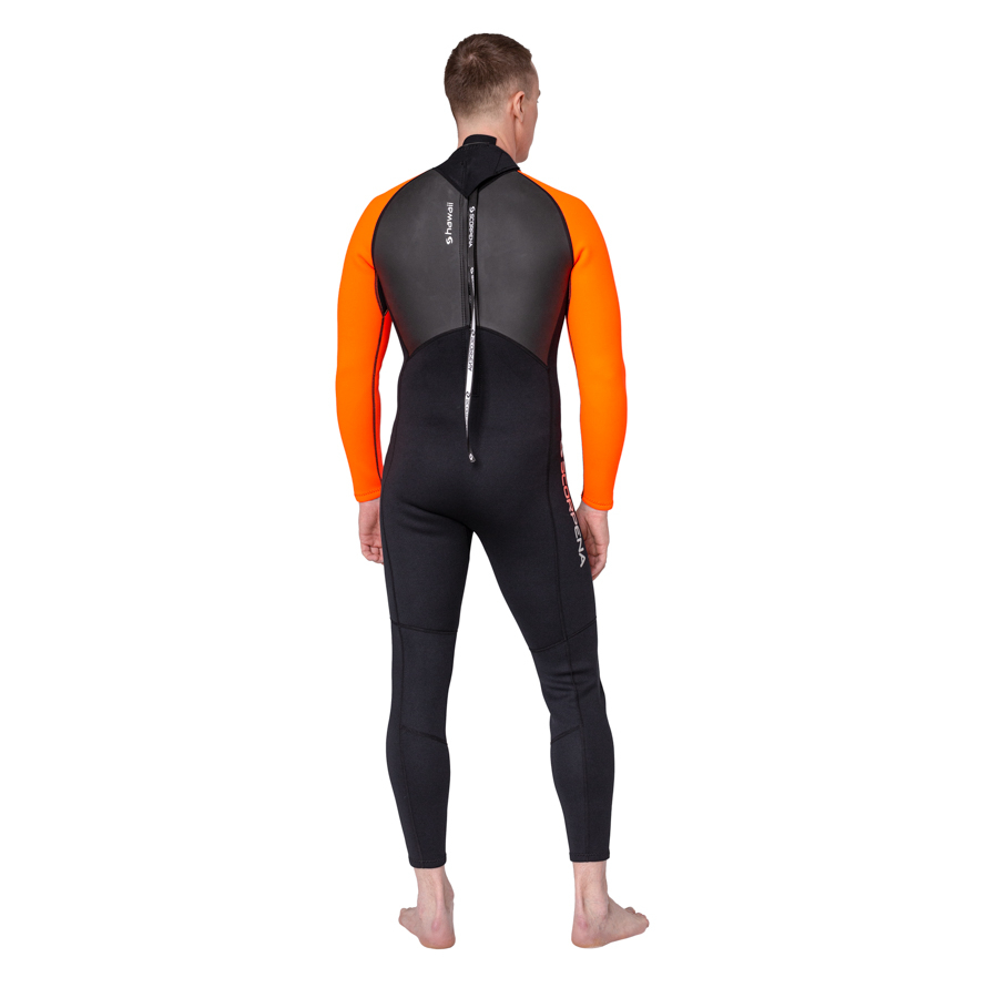 Made of 2.5 mm neoprene with double-sided nylon coating, it’s easy to put on and take off. Its comfortable anatomical cut and unique flat multi-thread seam technology make this suit barely noticeable on the body even during active movements and extended time in the water.