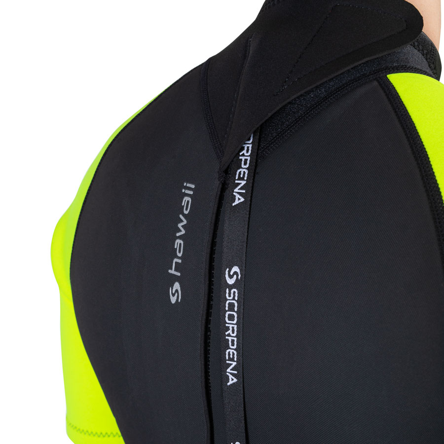 Comfortable cut and flatlock seams provide high comfort when using Scorpena Hawaii. The wetsuits’ collars feature special Glideskin neoprene, which provides the tightest and most comfortable fit, thus preventing water from entering the suit. And the adjustable Velcro closure allows for individual preferences in neck circumference.