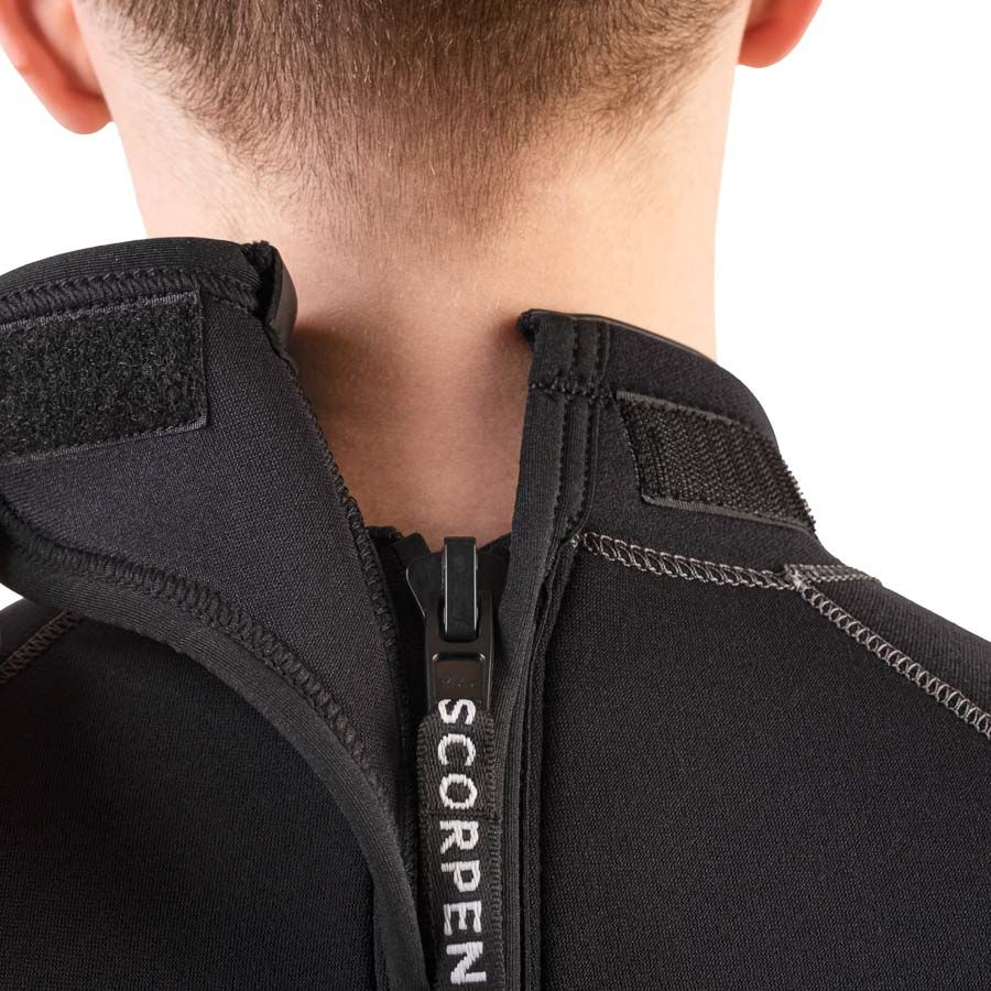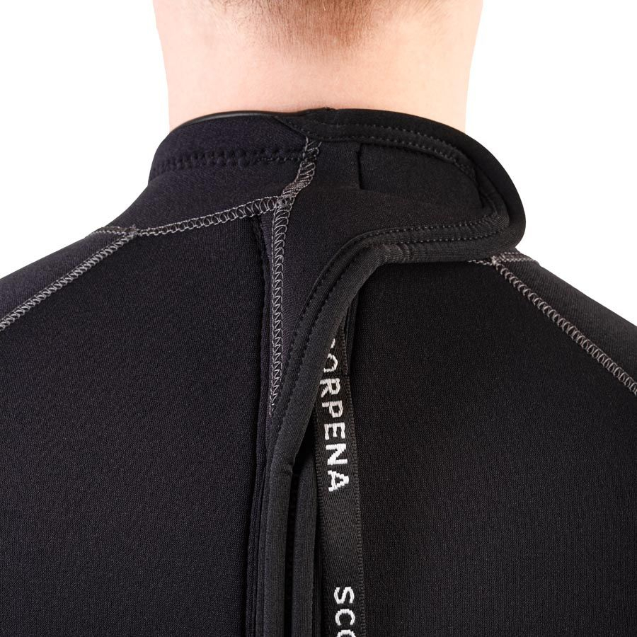 Mīkstā Velcro augšējā atloka nodrošina ciešu piegulšanu apkaklei ap nirēja kaklu, kā arī nodrošina slēdzi fiksētā stāvoklī. Apkakles augšējā mala ir izklāta ar AQUASTOP, mīkstu neoprēna aproci ar īpašu pārklājumu, lai novērstu ūdens iekļūšanu. 7mm hidroterpiem potītes ir aprīkotas ar īsu rāvējslēdzēju, lai atvieglotu lietošanu.