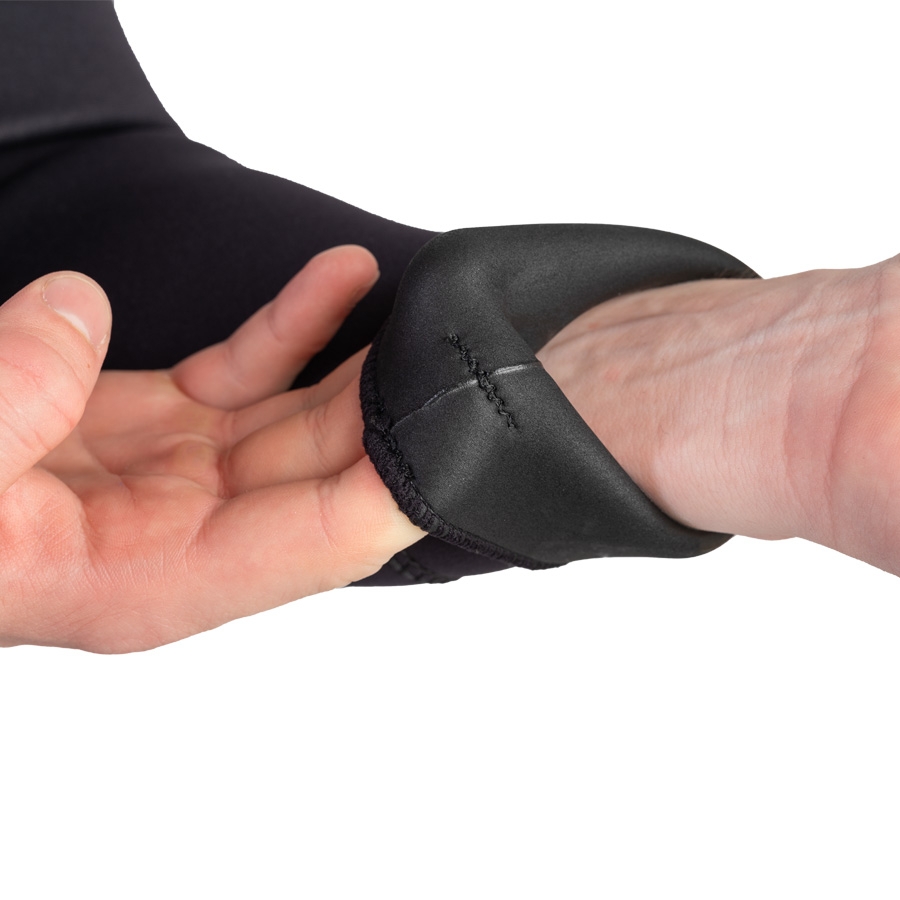 · The edges of the sleeves, pants and hood are overlocked to prevent wetsuit damage along the edges.