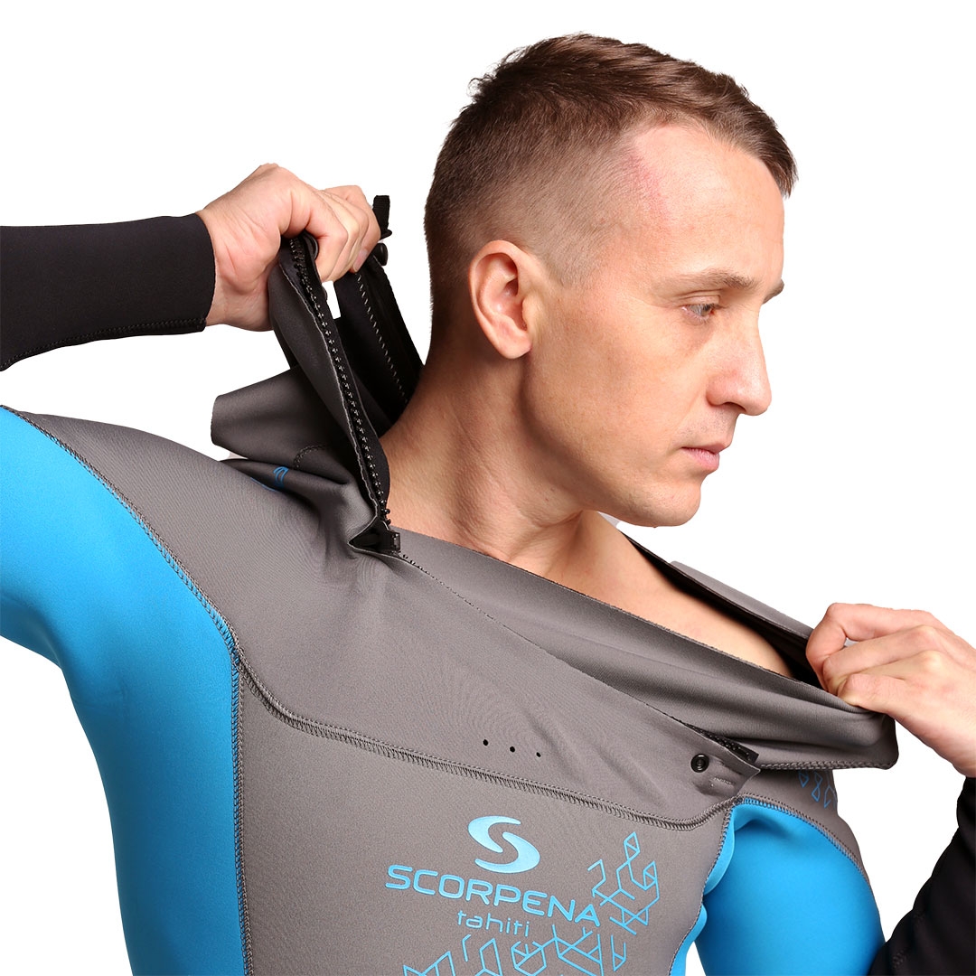 Comfortable cut and flatlock seams provide high comfort when using Scorpena Hawaii. The wetsuits’ collars feature special Glideskin neoprene, which provides the tightest and most comfortable fit, thus preventing water from entering the suit. And the adjustable Velcro closure allows for individual preferences in neck circumference.