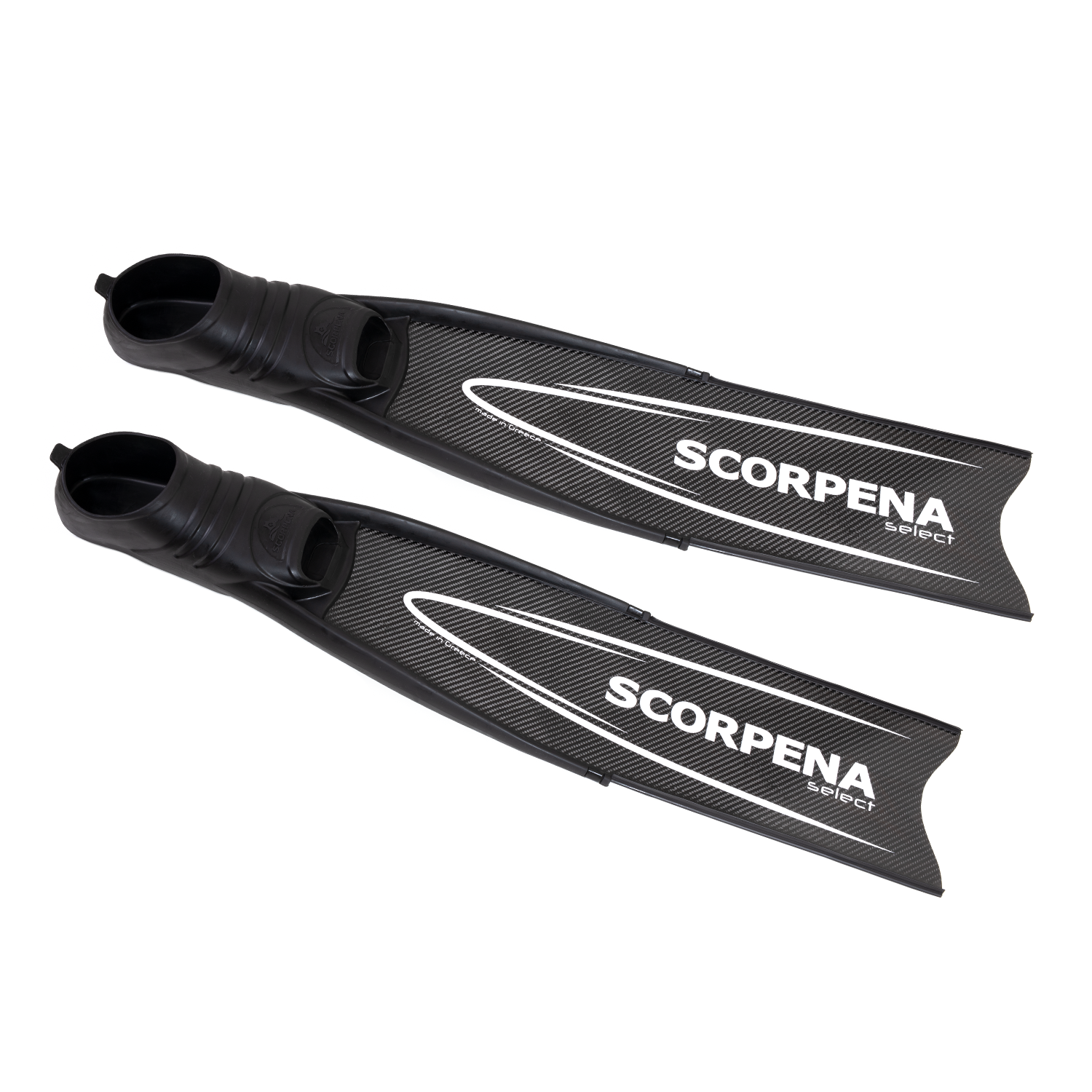 Scorpena Select asmeņi ir izgatavoti no jaunās paaudzes karbona, uzlabotas epoksīda sveķu kompozīcijas. Asmeņiem ir dažādi cietības līmeņi: mīksts un elastīgs uz galiem, bet izturīgs centrā. Šīs īpašības ļauj veikt spēcīgus, jaudīgus sitienus ar minimālu piepūli, līdz ar to palielinot niršanas laiku.