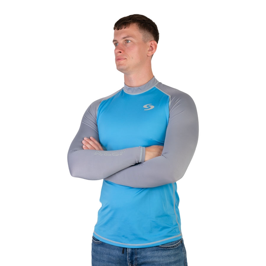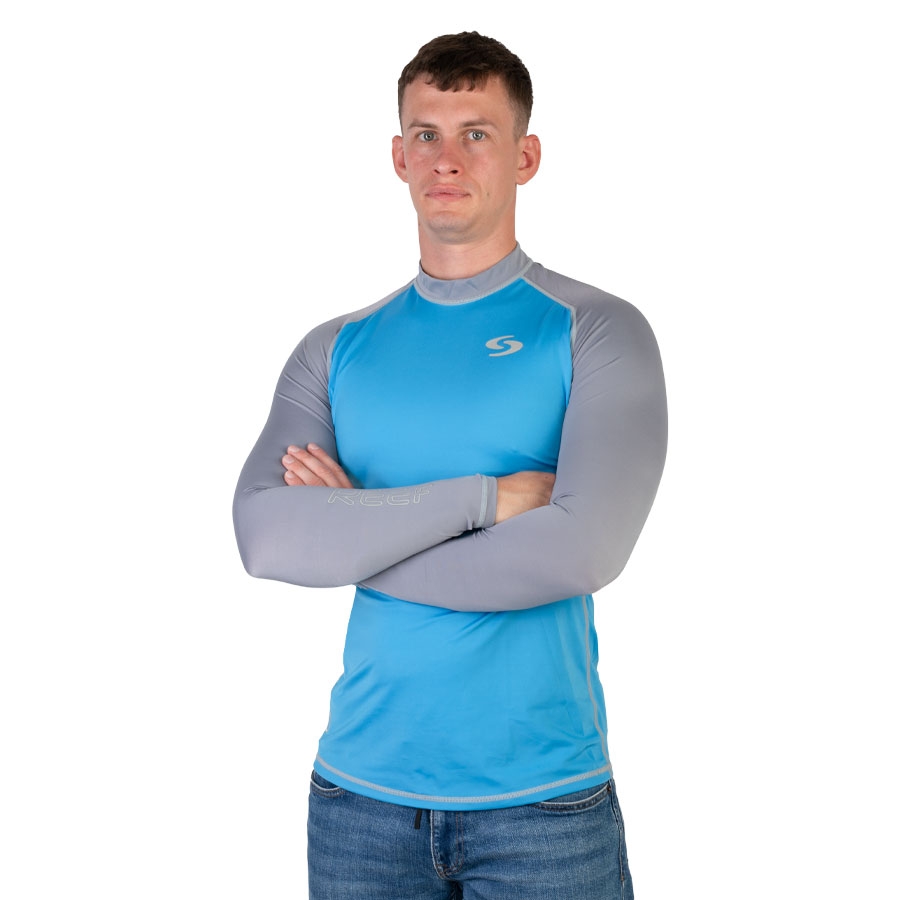 It fits perfectly without restricting movement and dries very quickly, offering UPF 50+ sun protection.