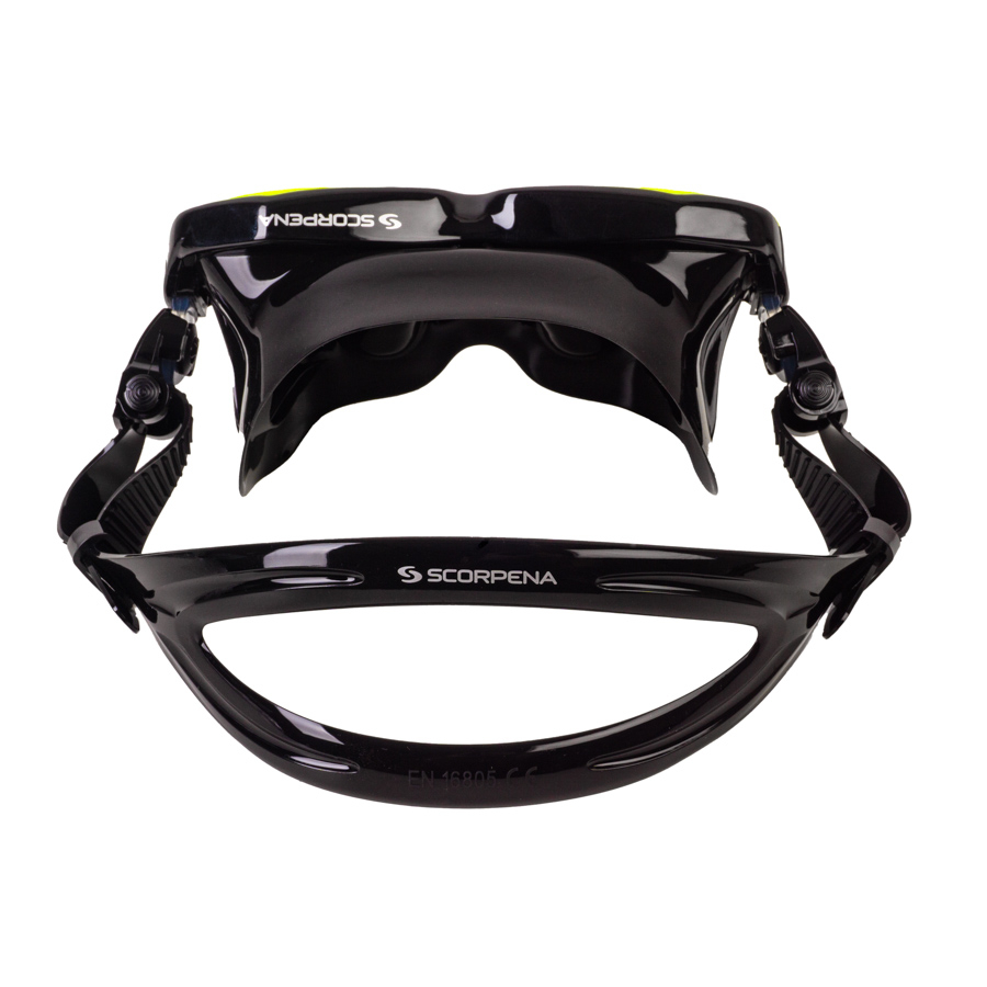 Scorpena A ir viegla un ērta maska ar mazu iekšējo tilpumu un plašu redzeslauku.