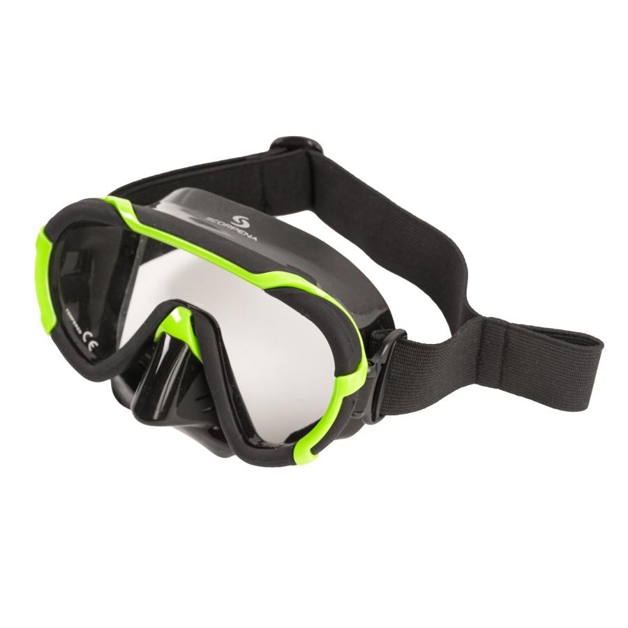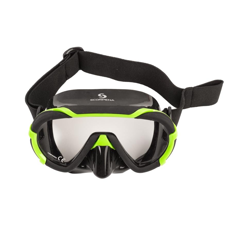 Izgatavota ar rūdītu stiklu. Maska ir aprīkota ar 100% hipoalerģisku un mīkstu silikona blīvējumu. Scorpena Miami maska ir izstrādāta, izmantojot jaunāko bezrāmju tehnoloģiju, kas nodrošina ciešu un ūdensnecaurlaidīgu piegulšanu.