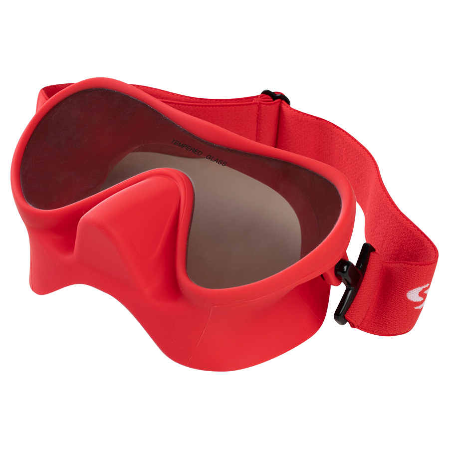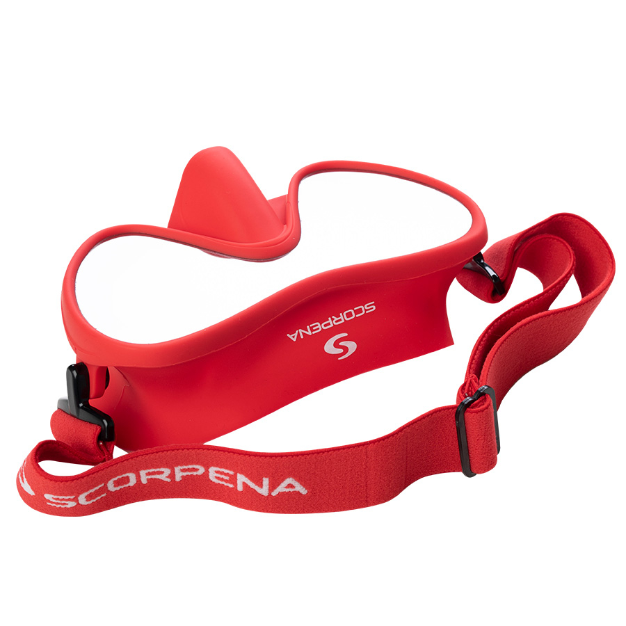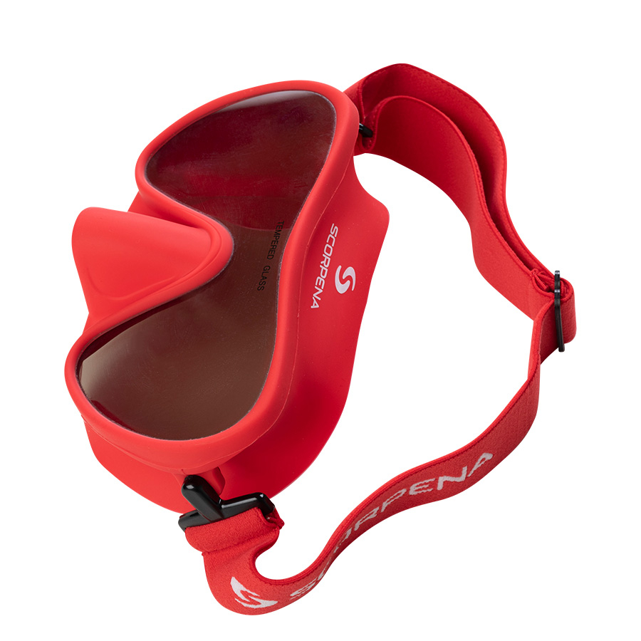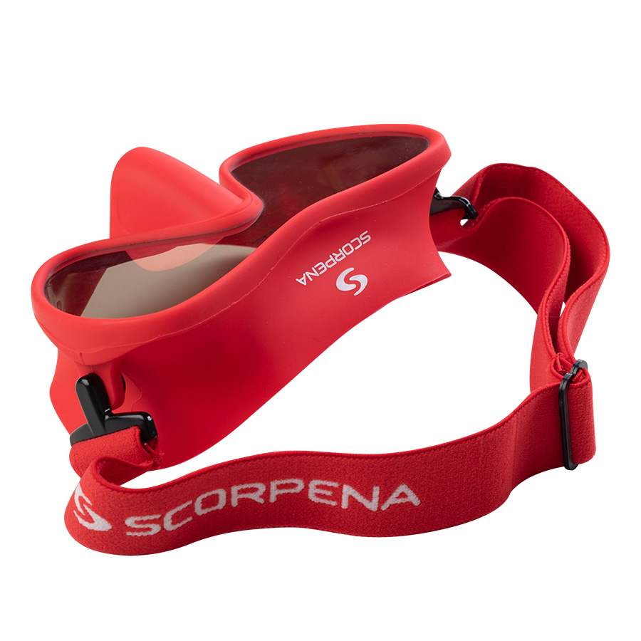 Maska Scorpena N3 ar spoguļlēcām un elastīgu siksnu, sarkana