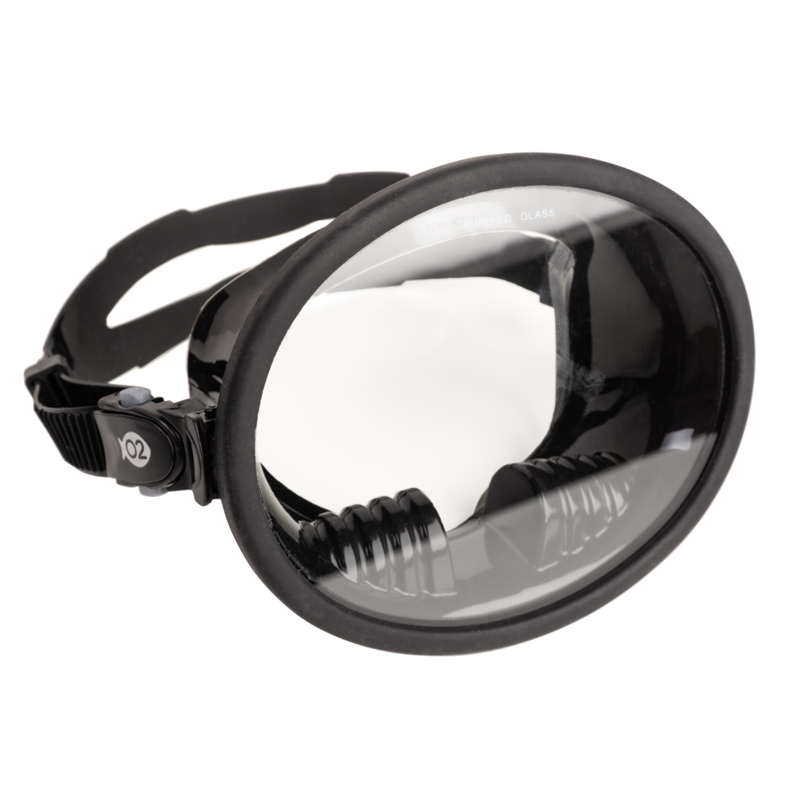 • Maska ir bezrāmja konstrukcijas, kurā lēca ir tieši iestrādāta mīkstā, hipoalerģiskā silikona blīvē.