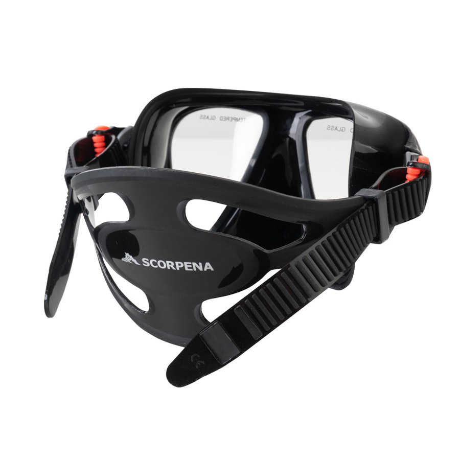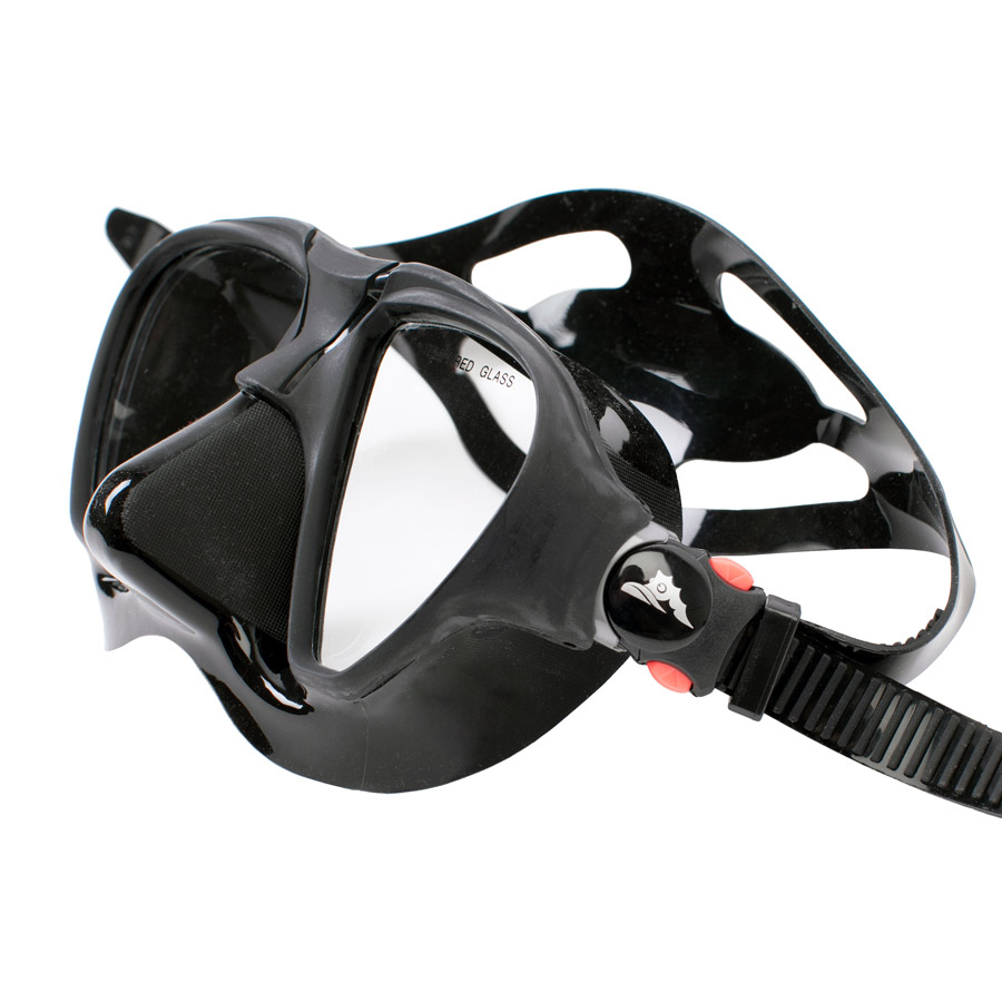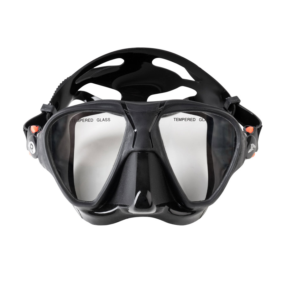 Plaša skatījuma maska zemūdens medībām. Mīksta silikona apmale ērti pieguļ jebkuram sejai. Apmales ārējā virsma ir matēta ar raupju struktūru. Pat biezas cimdi nenoslīdēs no deguna kabatas, veicot izlīdzināšanu. Priekšējās siksniņas rotē uz augšu un uz leju, iekšpuses pusē, nodrošinot visērtāko maskas piegulšanu. Plaša virsma no cietā stikla lēcas nodrošina ļoti plašu skatījumu. Apmale un rāmis ir veidoti kopā, nodrošinot ļoti izturīgu konstrukciju.
