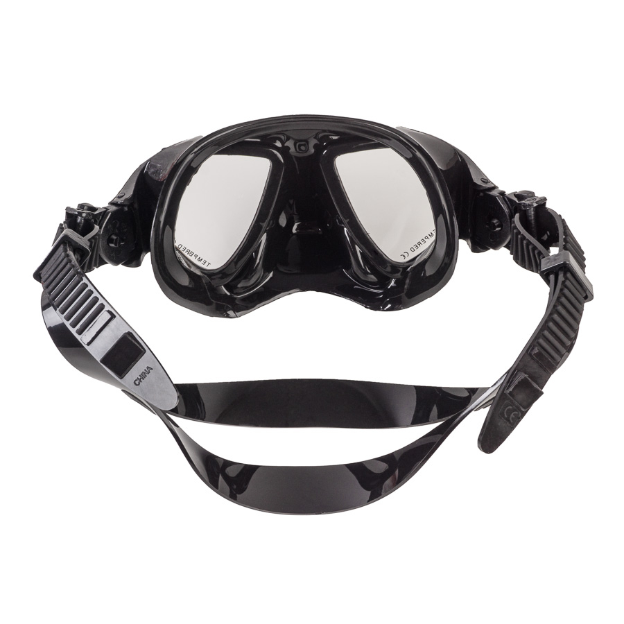 Viengabala dizains, izveidots, sapludinot stiklu tieši ar silikonu, nodrošina maksimālu izturību un kompaktumu. Ērta deguna kabata atvieglo izpūšanu, bet sprādzes ar mikrometrisko regulēšanas mehānismu ļauj vienā kustībā noregulēt siksnas spriedzi.