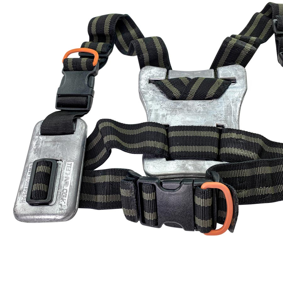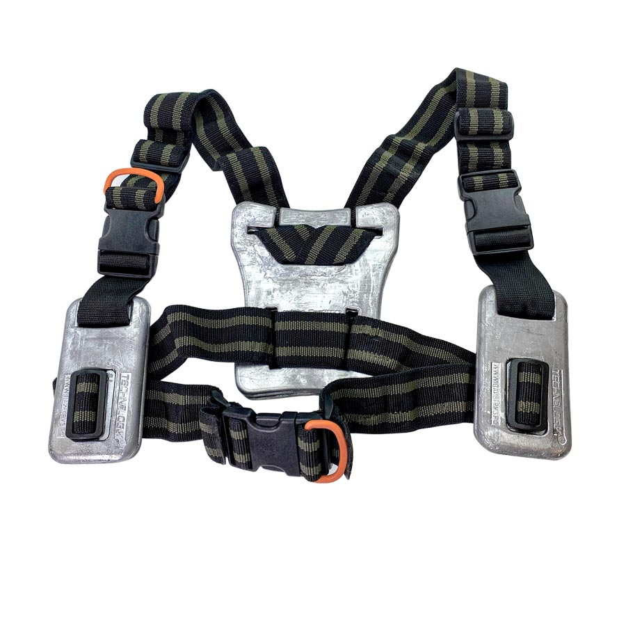 • Equipped with wide plastic quick-release buckles (fastex) for easy donning. The buckle design also allows for effortless adjustment of the strap length to fit different body heights and chest/waist sizes.