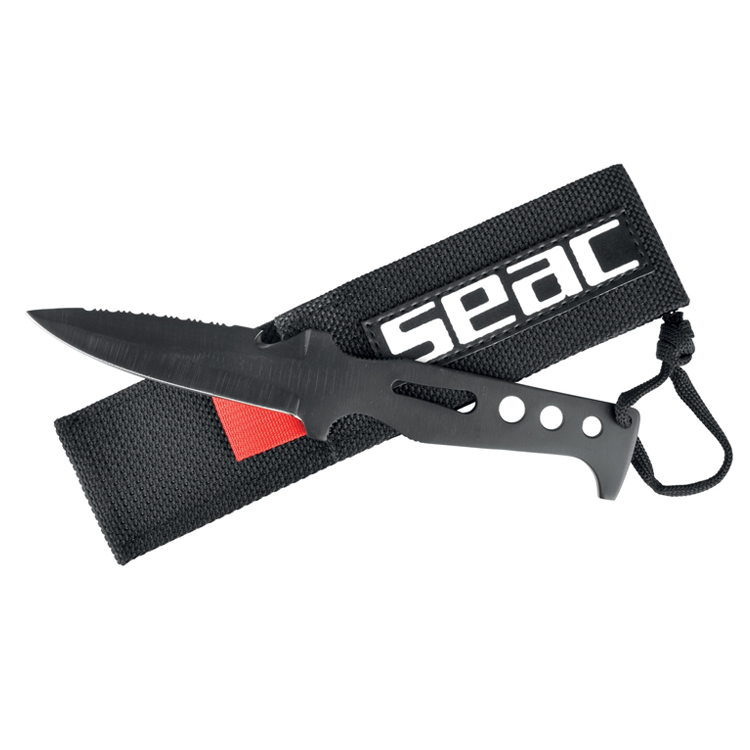 95 mm rūdīta AISI 420 nerūsējošā tērauda asmens ar diviem griezuma veidiem — gludu un zāģveida —, kā arī auklas griezēju. Kopējais garums: 200 mm.