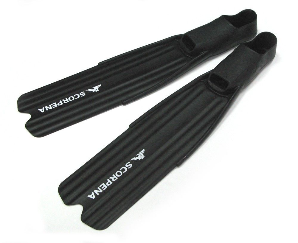 Pleznas Scorpena Bveida medībām. Šie botes pilnīgi uzstādīts asmeņi izgatavoti no kompozītmateriāliem (oglekļa šķiedras, stikla) daudzi labi zināmi ražotāji. Lieliska izvēle gan iesācējiem zemūdens medniekiem, un vairāk pieredzējis, kuri dod priekšroku medībām seklos ūdeņos. Kurpe ar elastīgu gumijas blade turētājiem ( “ūsas”) un asmens zemo modulis polipropilēna ar palielinātu leņķi lieces no 22 grādiem. Garums spuras no uzgaļa līdz papēža asmens gumiju – 90 cm