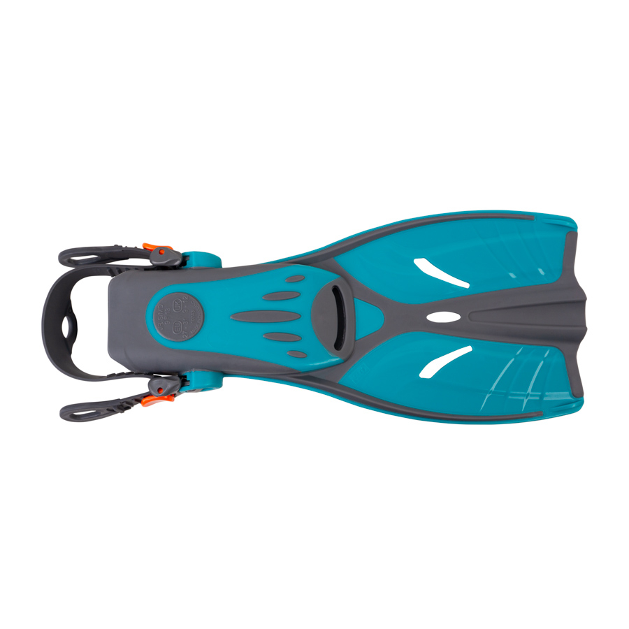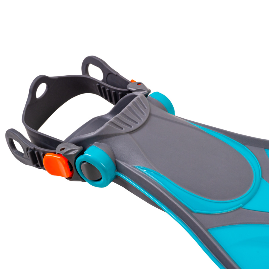 Vēl viena šo pleznu priekšrocība ir regulējama papēža siksna ar sprādzēm.