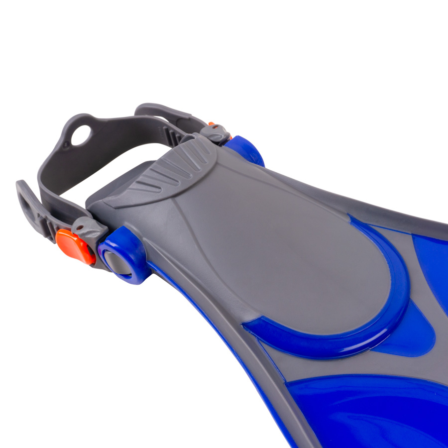 Vēl viena šo pleznu priekšrocība ir regulējama papēža siksna ar sprādzēm.