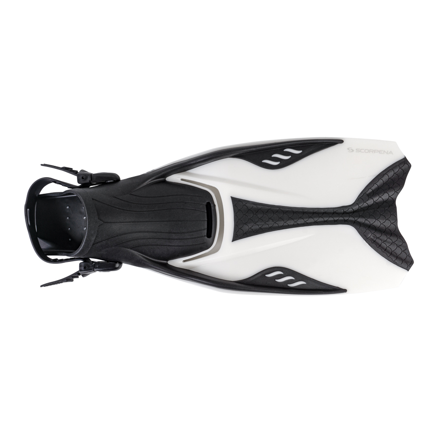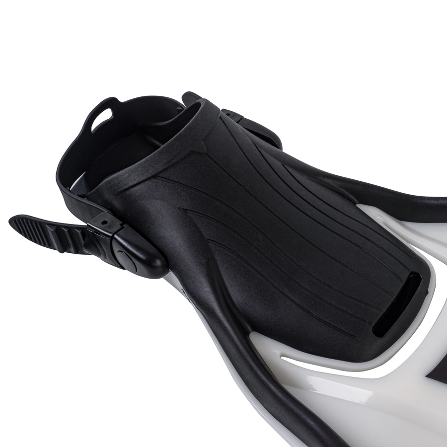 • Atvērtais papēža dizains nozīmē, ka precīza izmēra atbilstība nav tik svarīga kā slēgtā tipa pleznām.