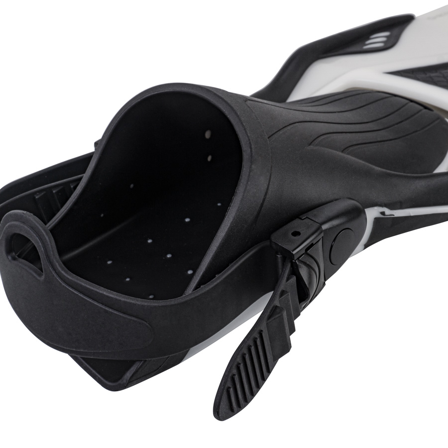 • Ļauj izmantot neoprēna zeķes, kas uzlabo komfortu vēsākā ūdenī.