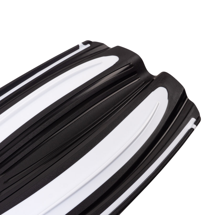 • Stingrās malas palīdz saglabāt lāpstiņas formu, un ūdens paliek lāpstiņas iekšpusē grūdiena laikā, kas samazina piepūli peldēšanā.