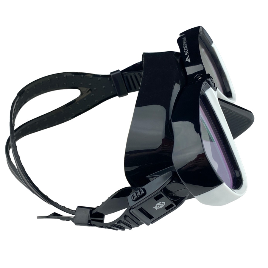 The Scorpena A mask is designed to be both lightweight and comfortable, featuring a compact internal volume and a broad field of view.