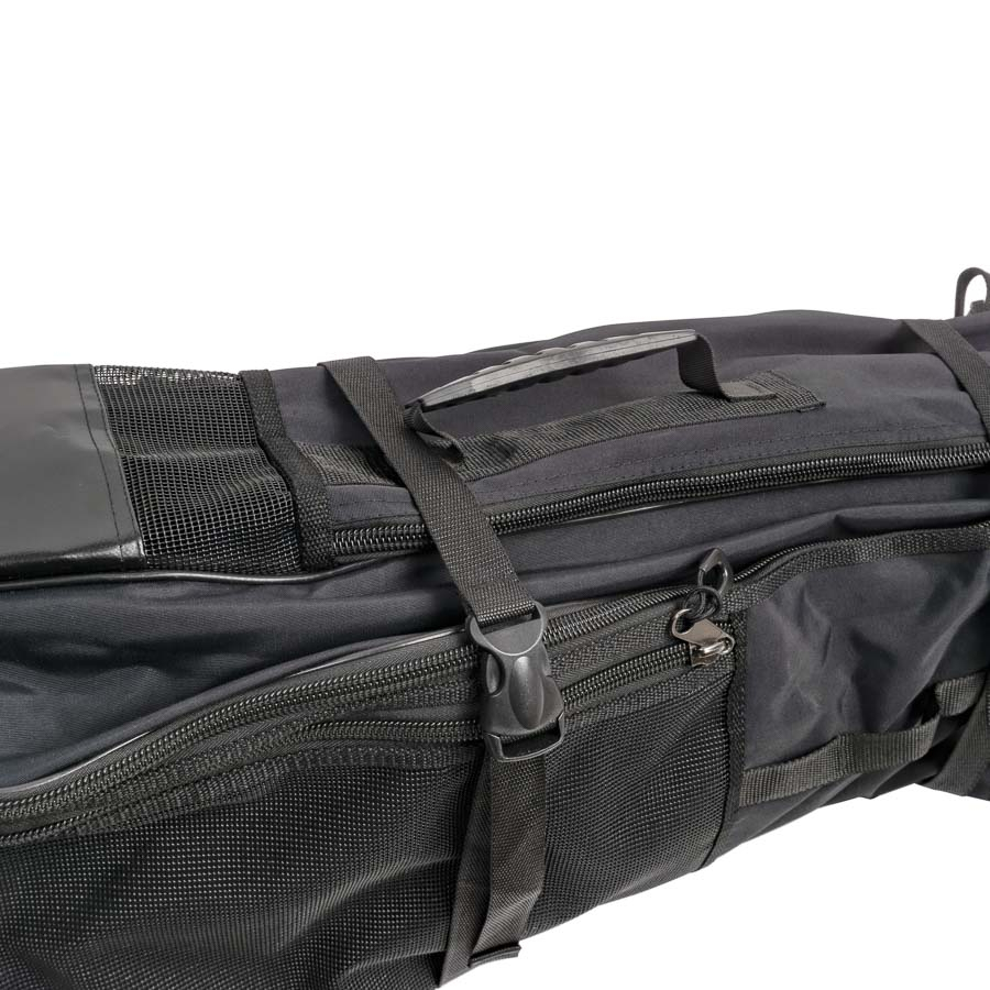 Mugursomai ir divi ietilpīgi nodalījumi, kuros viegli var ievietot garās pleznas, vieglu hidrotērpu, masku, trubiņu un citus peldēšanas piederumus.