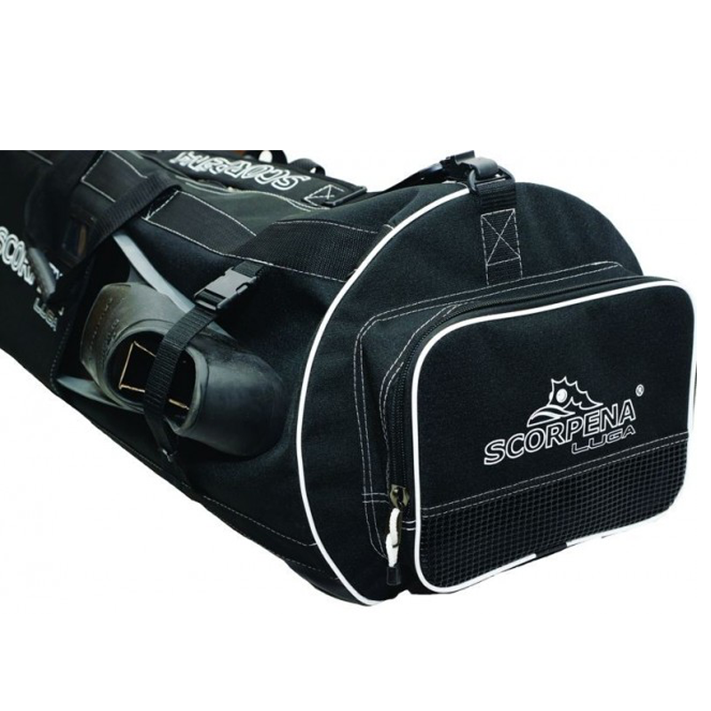 Scorpena lielā ceļojumu soma ir aprīkota ar divām plašām galējām kabatām, katra izmēra 30×10 cm, un plecu siksnu ar mīkstu rokturi.