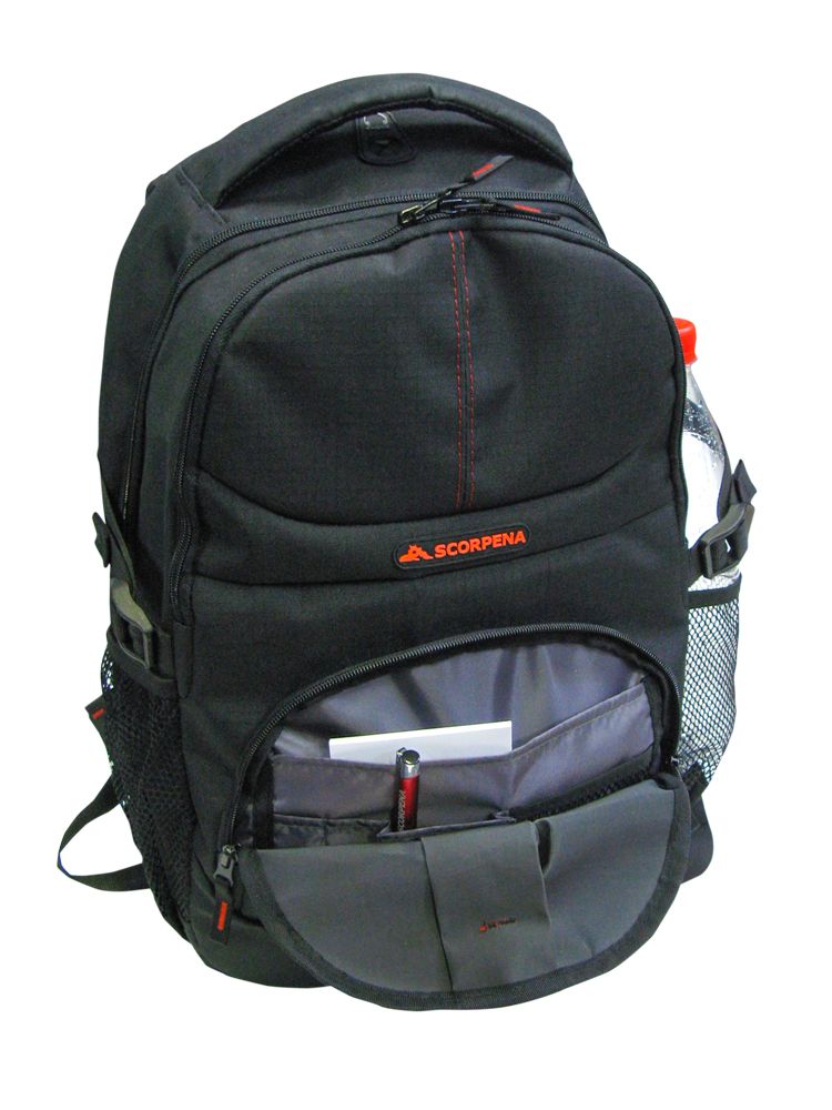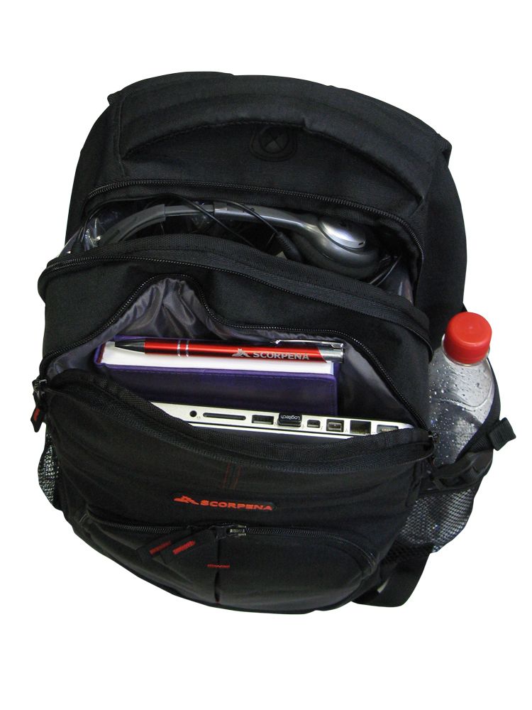 Scorpena mugursoma ir aprīkota ar ērtu mīkstu rokturi pārvadāšanai rokās un platām plecu siksnām, kuru garumu var ātri pielāgot.