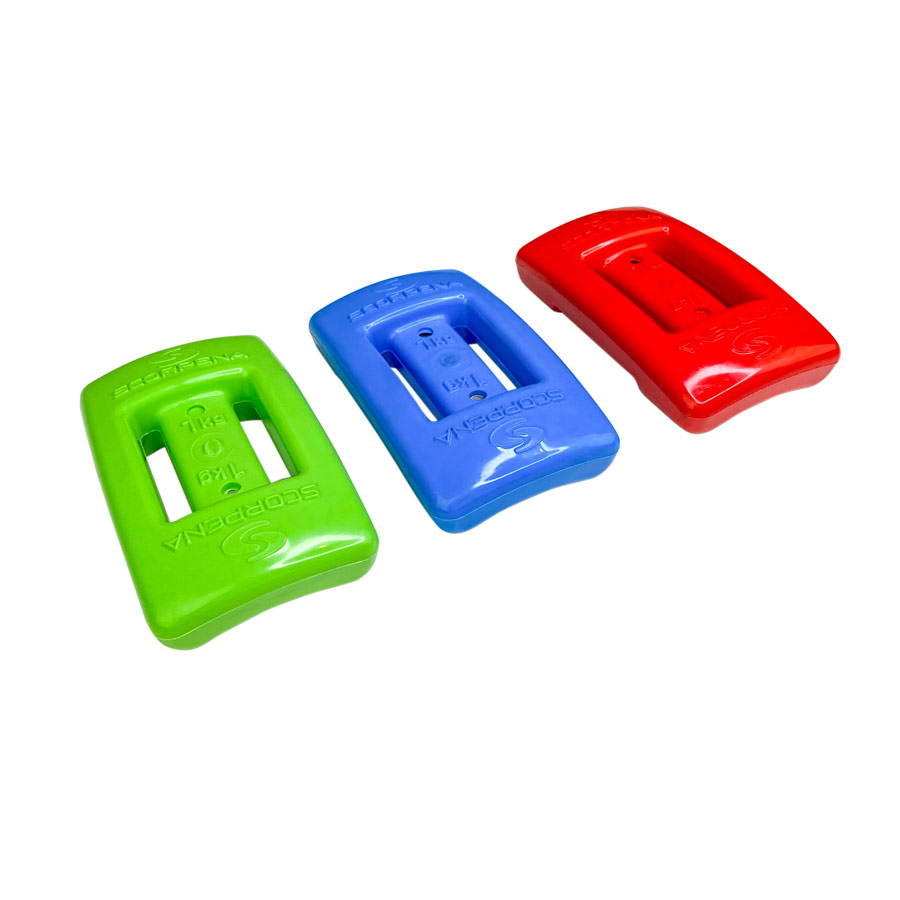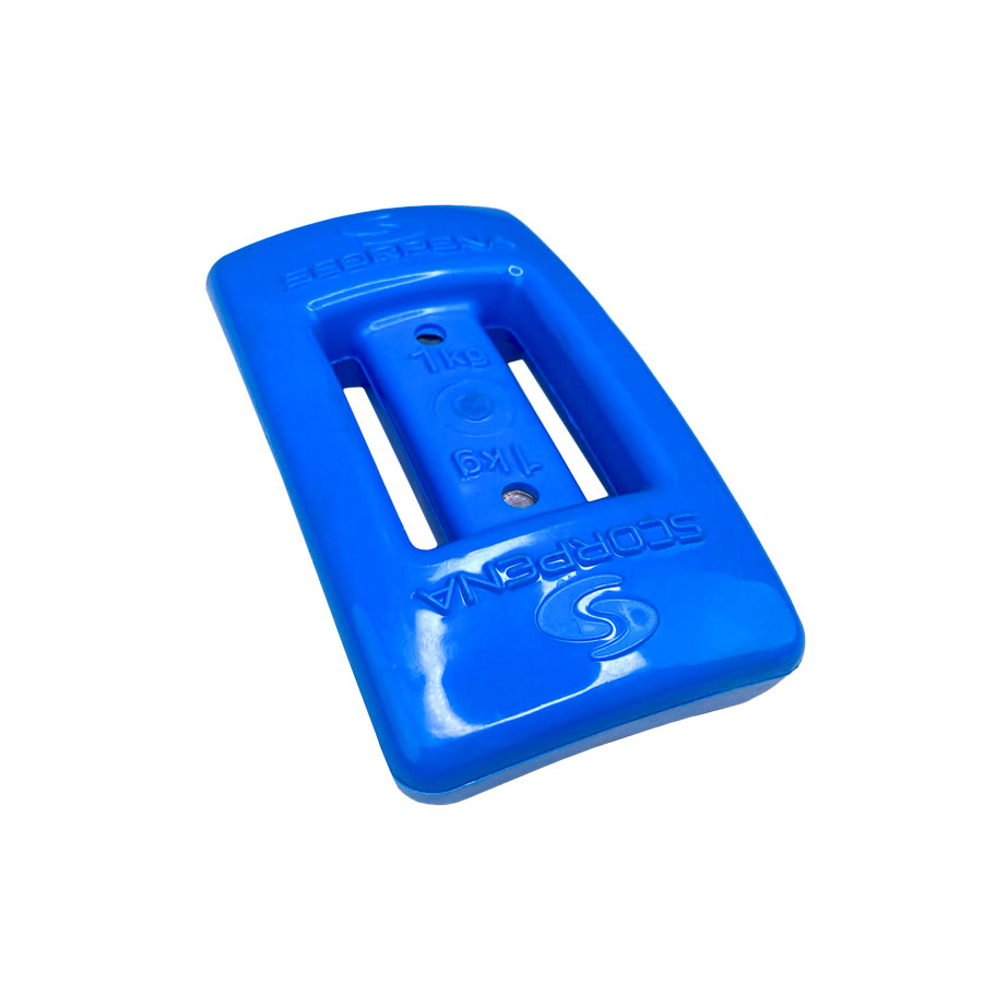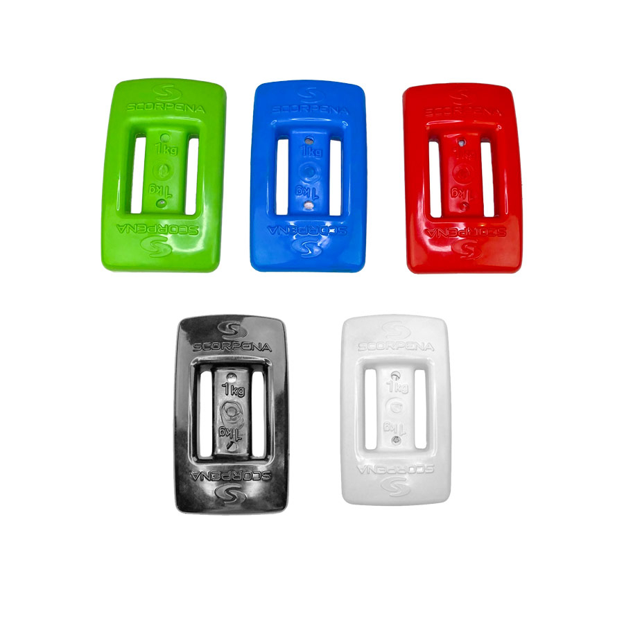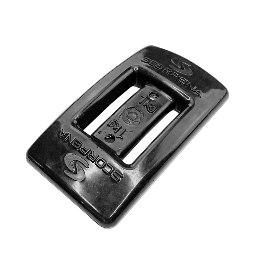 The Scorpena lead weight is designed to be placed on a weight belt with a width of 48-50 mm. These weights are essential for achieving neutral buoyancy for the spearfisher wearing a neoprene wetsuit. The quantity of weights required is determined individually based on the thickness of the wetsuit, other equipment used, the diver’s weight, and the diving depth.