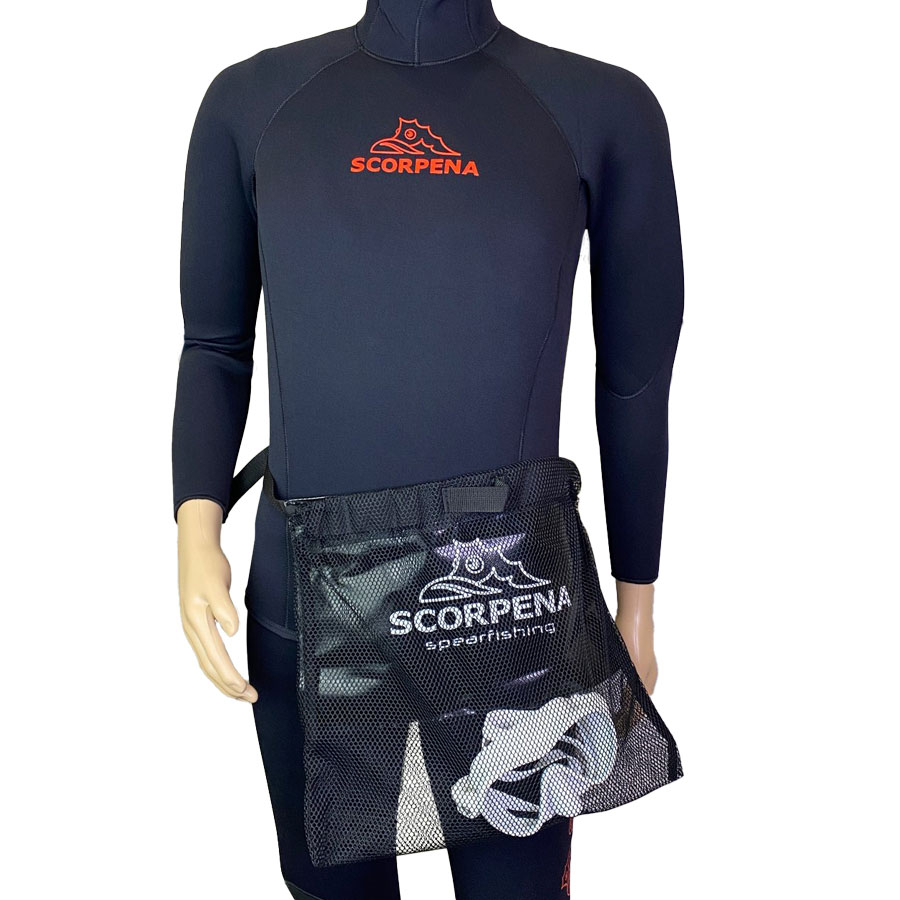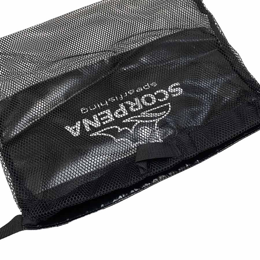 SCORPENA jostas soma ir paredzēta jūras velšu savākšanai. Somai aizmugurējā daļā ir izturīgs ieliktnis no Poly Oxford 1680D materiāla ar PVC pārklājumu, kas nodrošina papildus aizsardzību un ilgmūžību. Somas priekšējās augšējās malas iekšpusē iestrādāta plaša gumijas josla, kas nodrošina ērtu piekļuvi un drošu satvērienu.