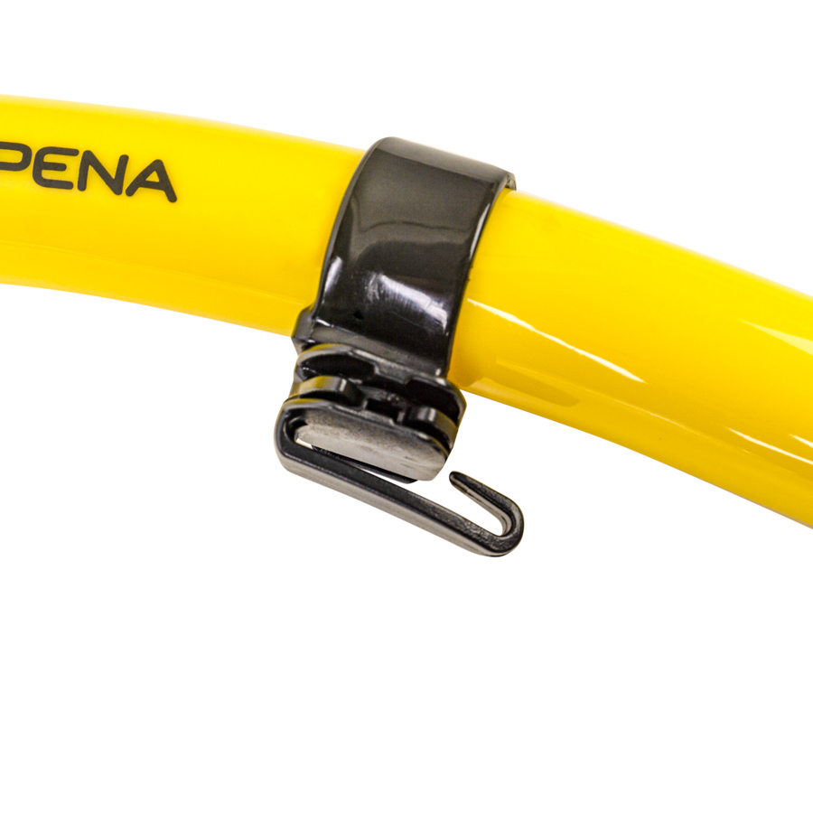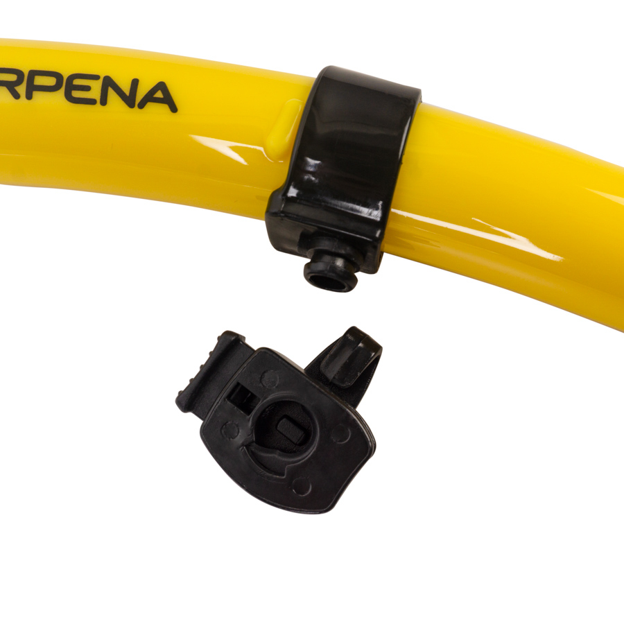 • Scorpena N trubiņas stiprinājums sastāv no divām daļām: pirmā tiek uzlikta uz trubiņas, bet otrā – piestiprināta pie maskas siksnas.