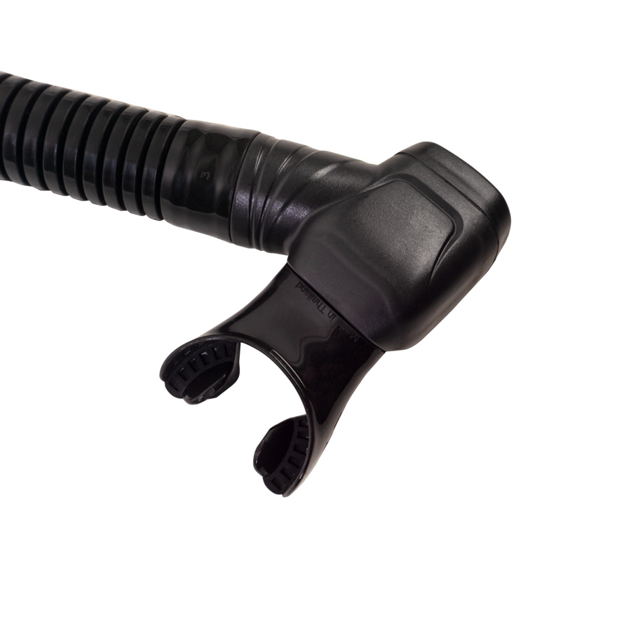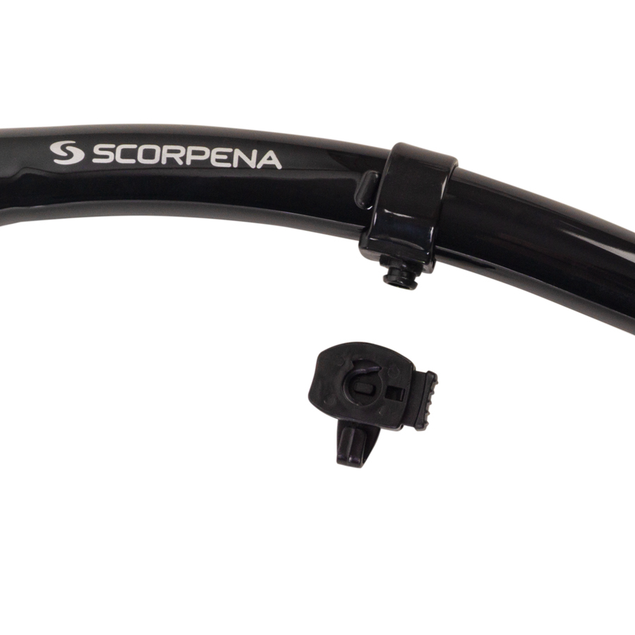 • Scorpena N trubiņas stiprinājums sastāv no divām daļām: pirmā tiek uzlikta uz trubiņas, bet otrā – piestiprināta pie maskas siksnas.